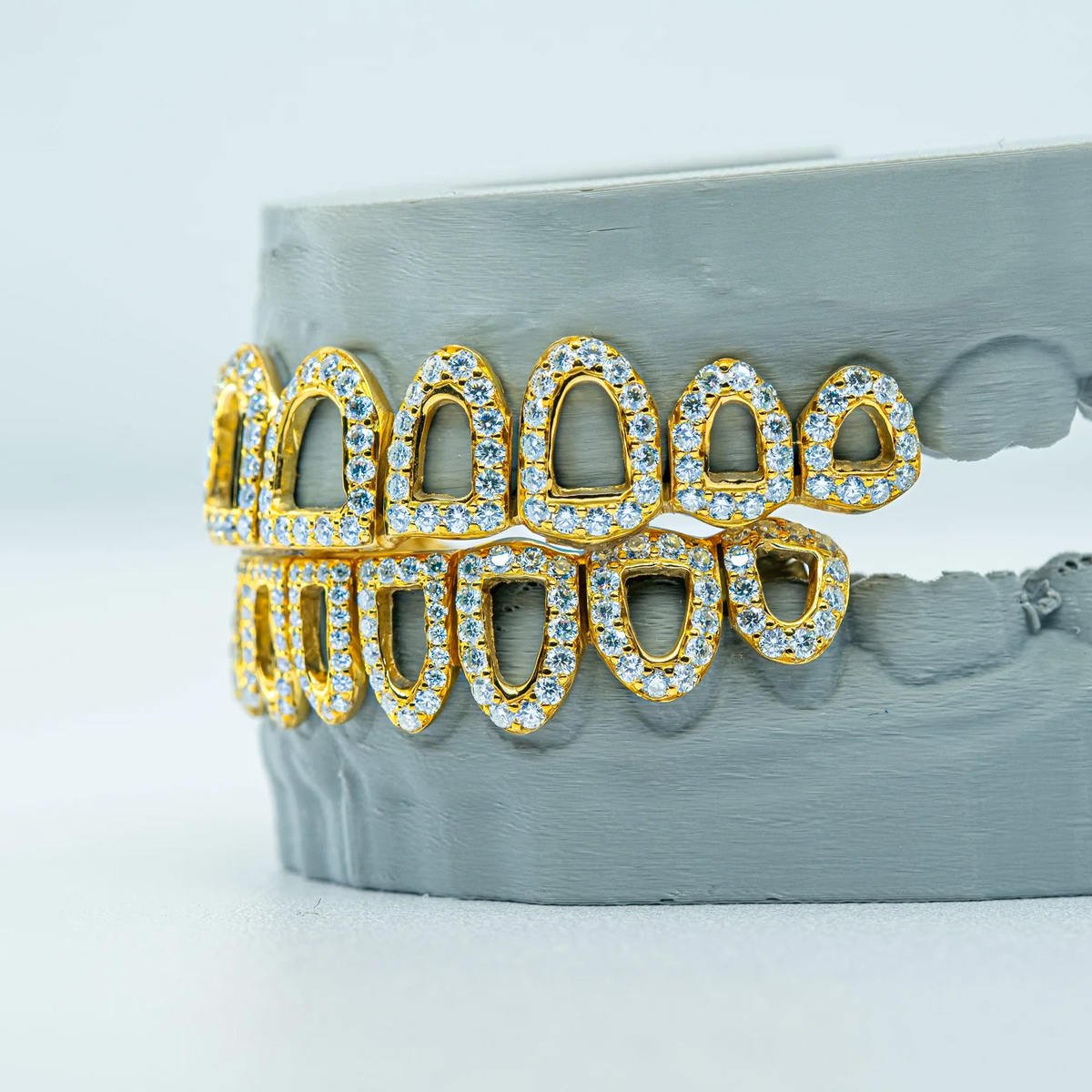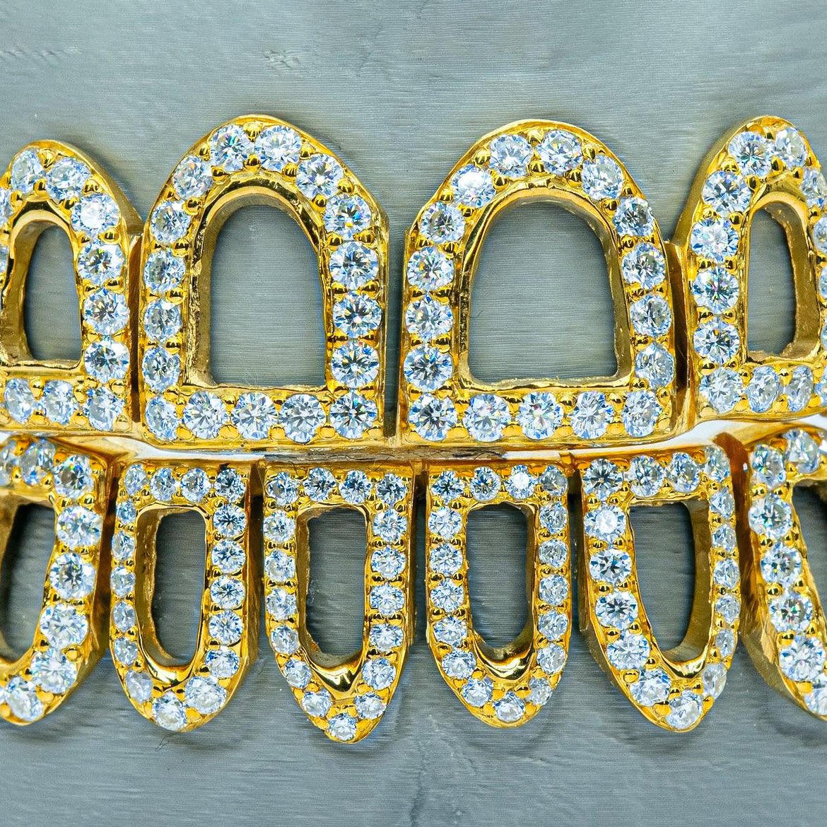 Custom Diamond 18K Gold Plated 925 Silver 10 Top 10 Bottom Moissanite Teeth Grillz for Teeth Moissanite Grillz