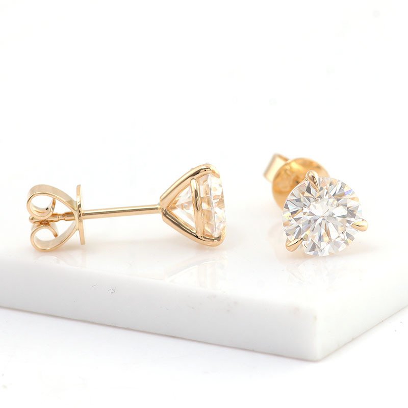 IGI/GIA-certified 1–3 carat lab-grown diamond studs crafted with premium HPHT or CVD diamonds for exceptional brilliance and purity. Each pair is set in 14K 18K solid gold with a secure 3-prong design, offering timeless elegance and tester-pass sparkle.